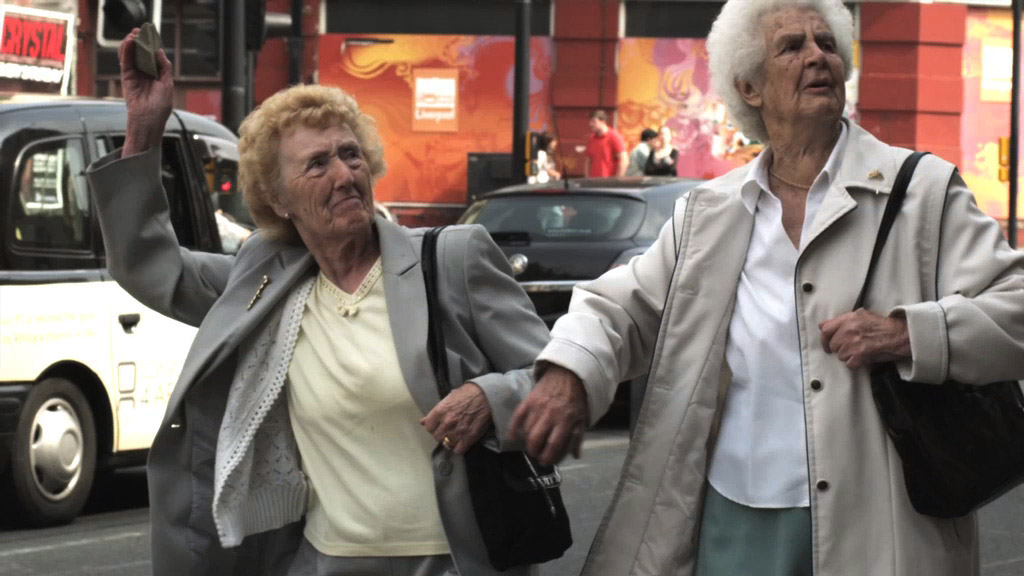 The setting is Liverpool, 2010. Cristina Lucas staged a fictional re-enactment with former employees of Europleasure International Ltd. The retired workers had once been strikers and occupiers of the factory. Lucas invited them to smash the windows of the now-abandoned factory where they had lost their jobs in the 1970s.