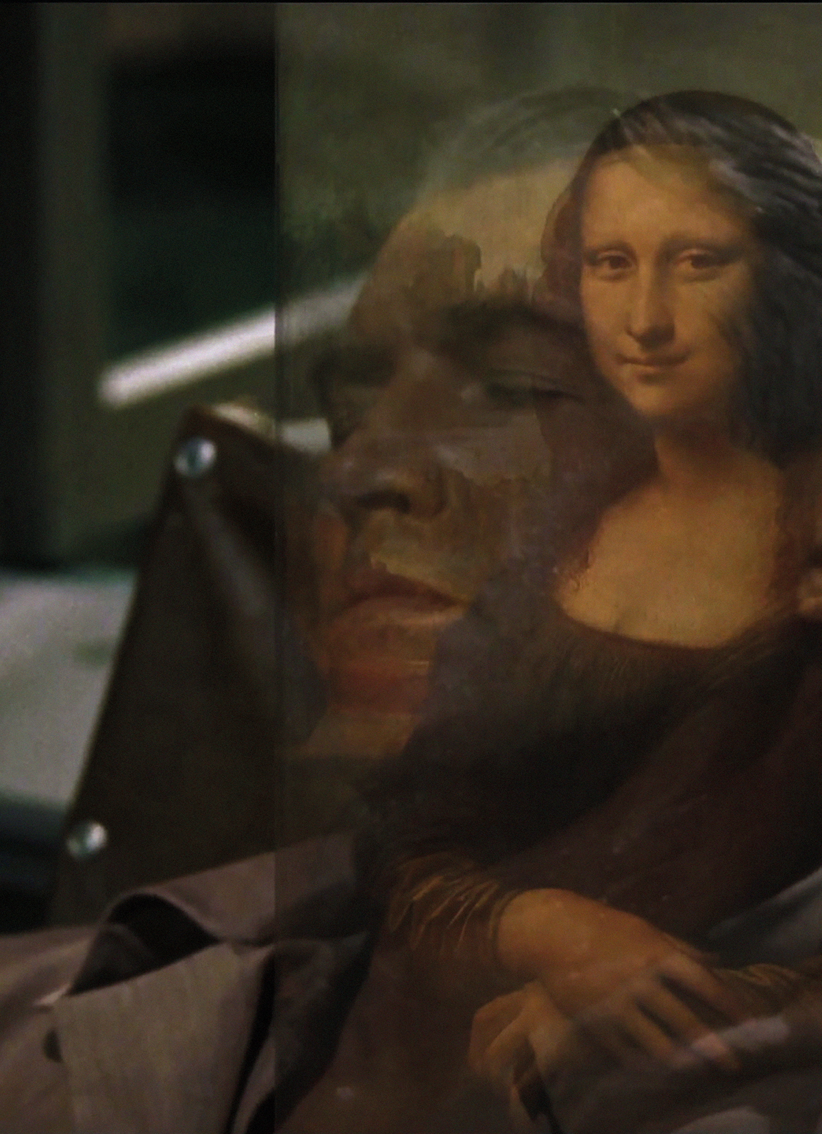 Renowned for her enigmatic smile, the Mona Lisa is traditionally considered an icon of grace and harmony. In Fiévet’s montage, however, her serene gaze is disrupted by a feverish thermometer, a whirring razor, and Miss Torso’s sultry sways. The Hitchcock connection is deliberate – Rear Window is a film about watching and its consequences. Fiévet extends this narrative by placing the Mona Lisa, long shrouded in mystery and fetishised, within a voyeuristic lens. As her facial expression merges with cinematic imagery, her iconic status wavers.