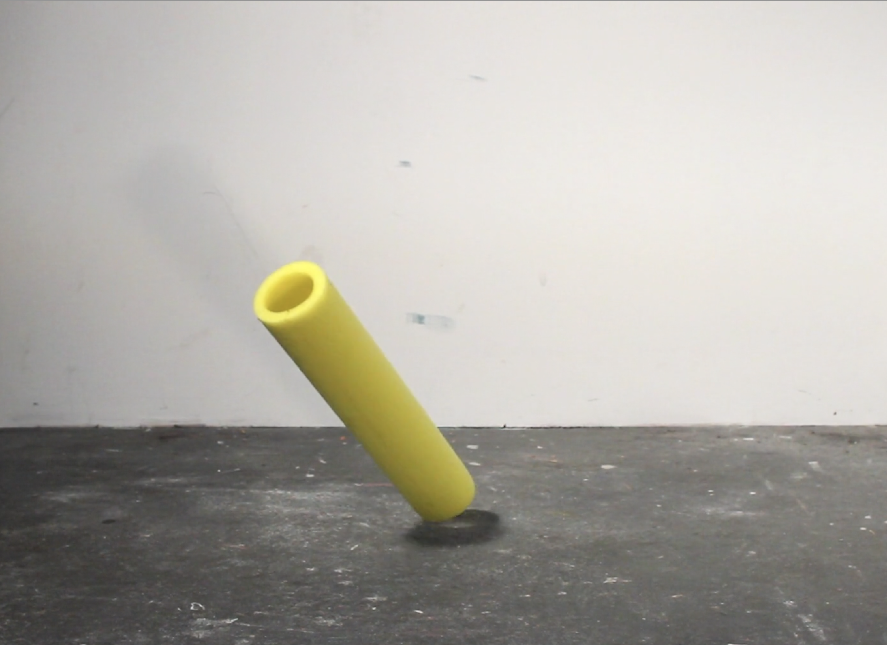 In two minutes, Sophie Clements immerses visitors in a hypnotic rhythm of various materials with different shapes and properties falling onto her studio’s hard concrete floor. Some objects – seemingly haphazardly chosen – bounce up, others jump away or snap the moment they hit the ground. Each with its own sound and response.